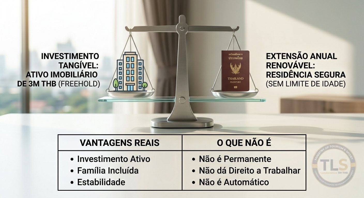 Tecnicamente não é um “visto” no sentido tradicional, é uma extensão de estadia baseada em investimento, renovável anualmente. Na prática, o resultado é o mesmo — pode permanecer na Tailândia legalmente de forma contínua.